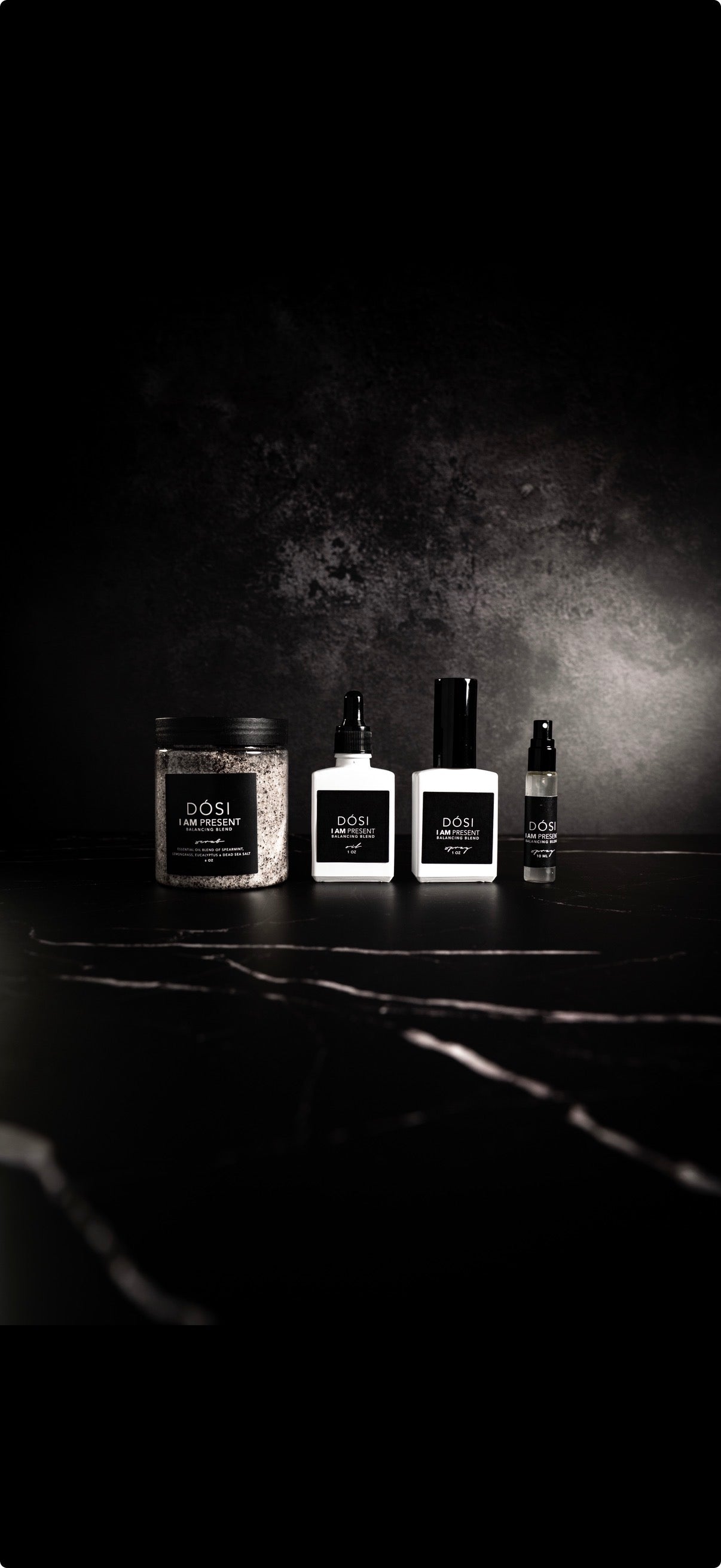 Includes:: Body Oil, Body Spray, Body Scrub & bath soak, travel spray.